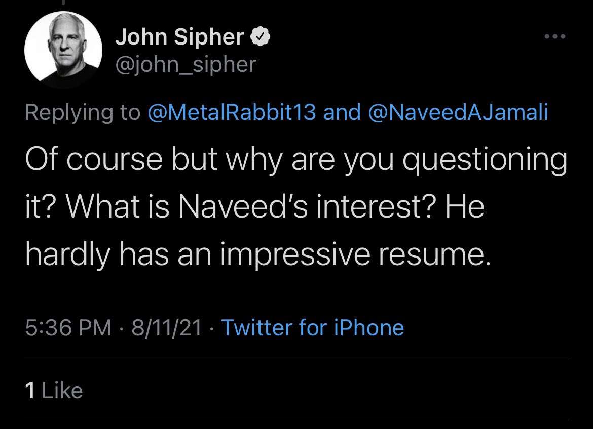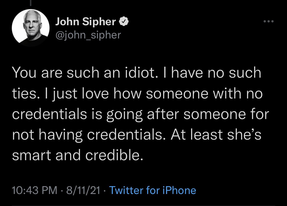 Cliff notes: @john_sipher has been attacking me for pointing out @MollyMcKew mislead or lied to Congress, problem is Sipher has ties to McKew. In sum he’s personally vested in her not being a fraud.