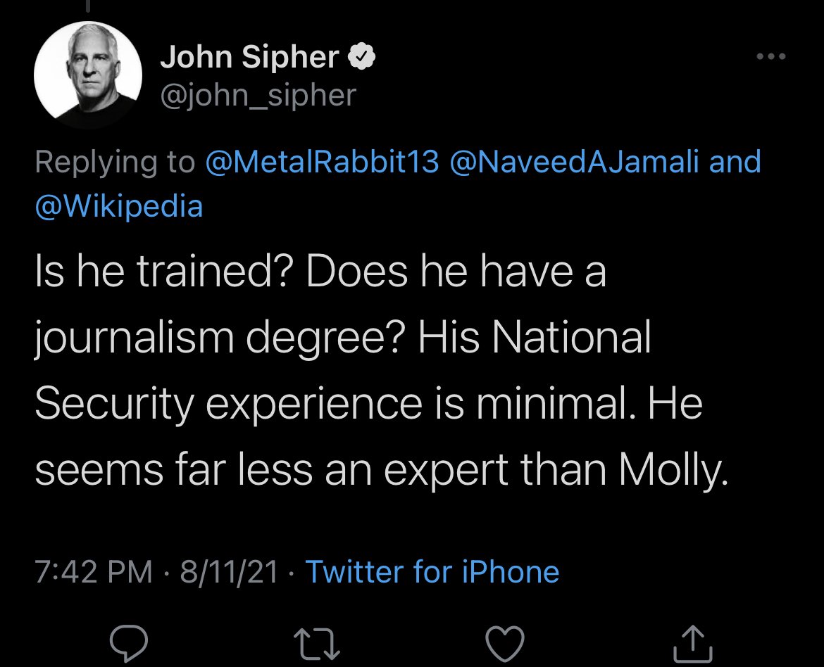 Hey @john_sipher you seem to have a vested and personal interest in defending @mollymckew, did you vouch for her? Is that what this is about? If she’s shown to be a fraud does it impact you personally?