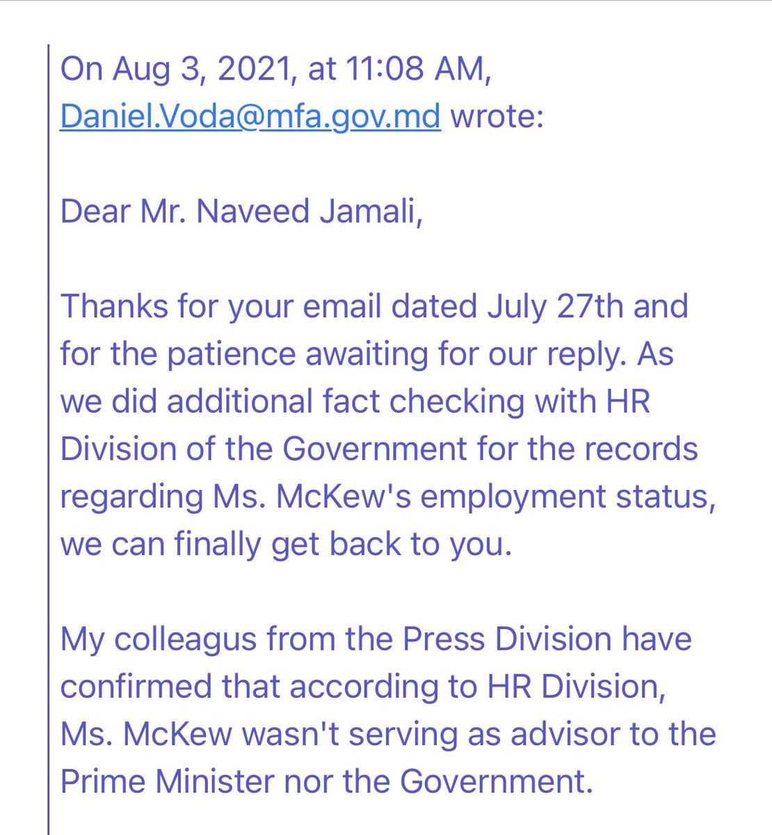 So for the millionth and one time, I found that @MollyMcKew had lied or misled Congress in testimony by saying she had worked for the Moldovan govt, when the Moldovans said she had not.