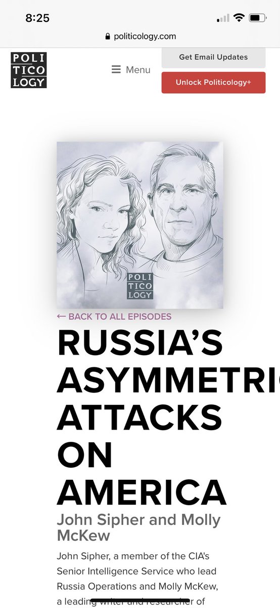 And there is this: “Guest speakers include information warfare expert Molly McKew, Russian CIA officer John Sipher, producers of the recent documentary Active Measures, and others.”