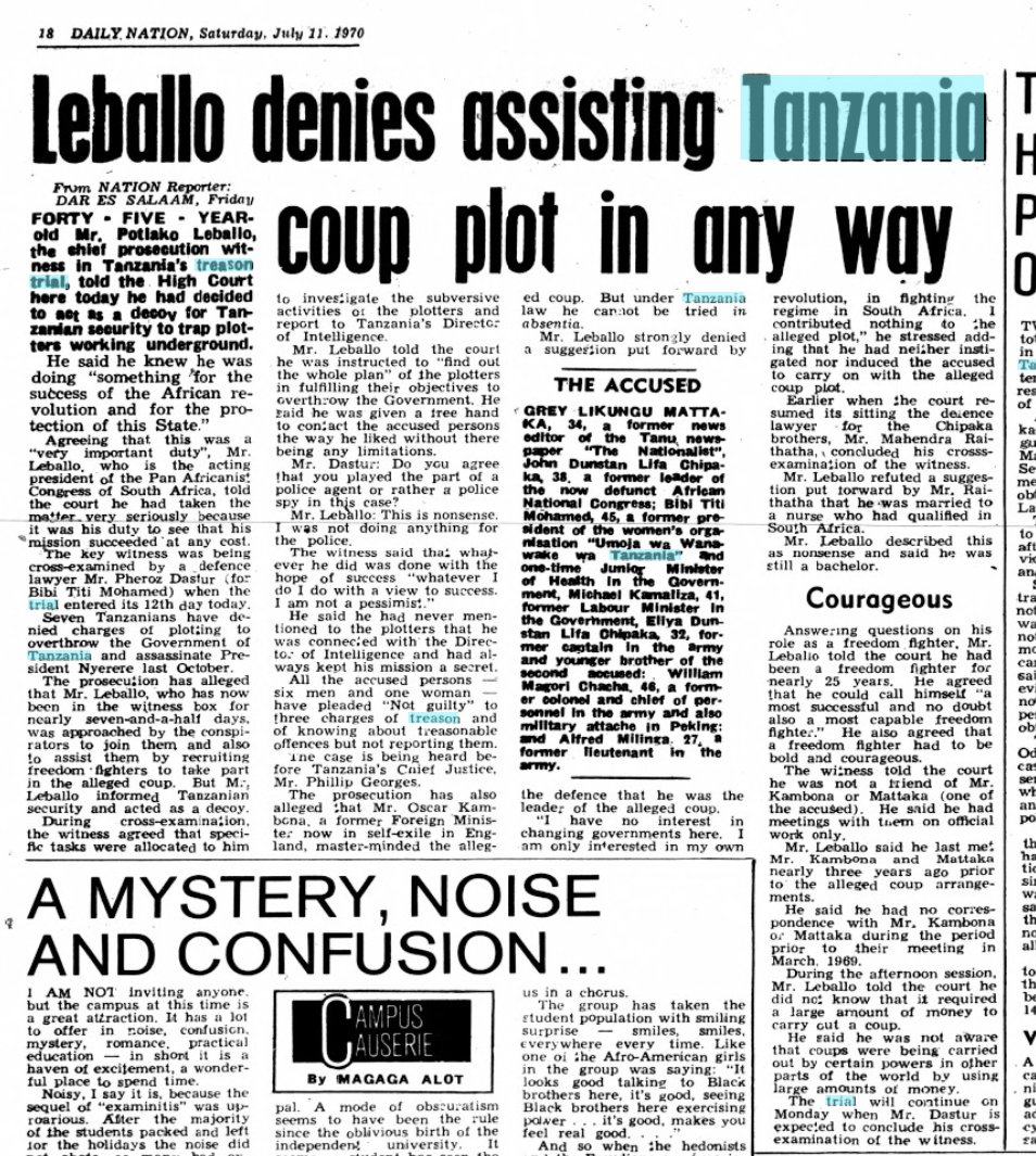 3/ A key witness for the prosecution was Potlako Leballo, sometime leader of the Pan-African Congress, a South Africa-based anti-apartheid organization headquartered in Dar.