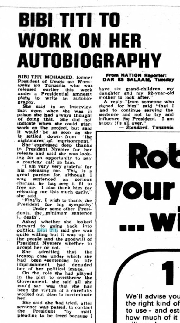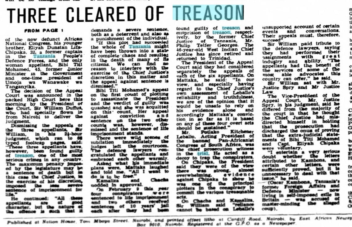 2/ Purportedly Kambona sent Bibi Titi funds to pay an assassin, who would work with men in the military to bring down Nyerere's govt.