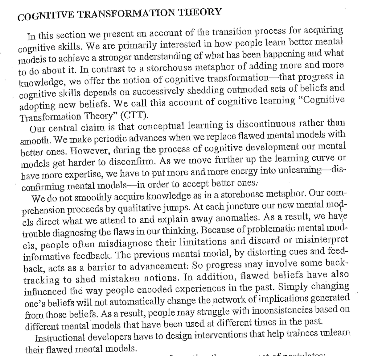 US Military, Naturalistic Decision Making researchers: "in order to accelerate expertise, we need to design our training programs to destroy existing mental models"