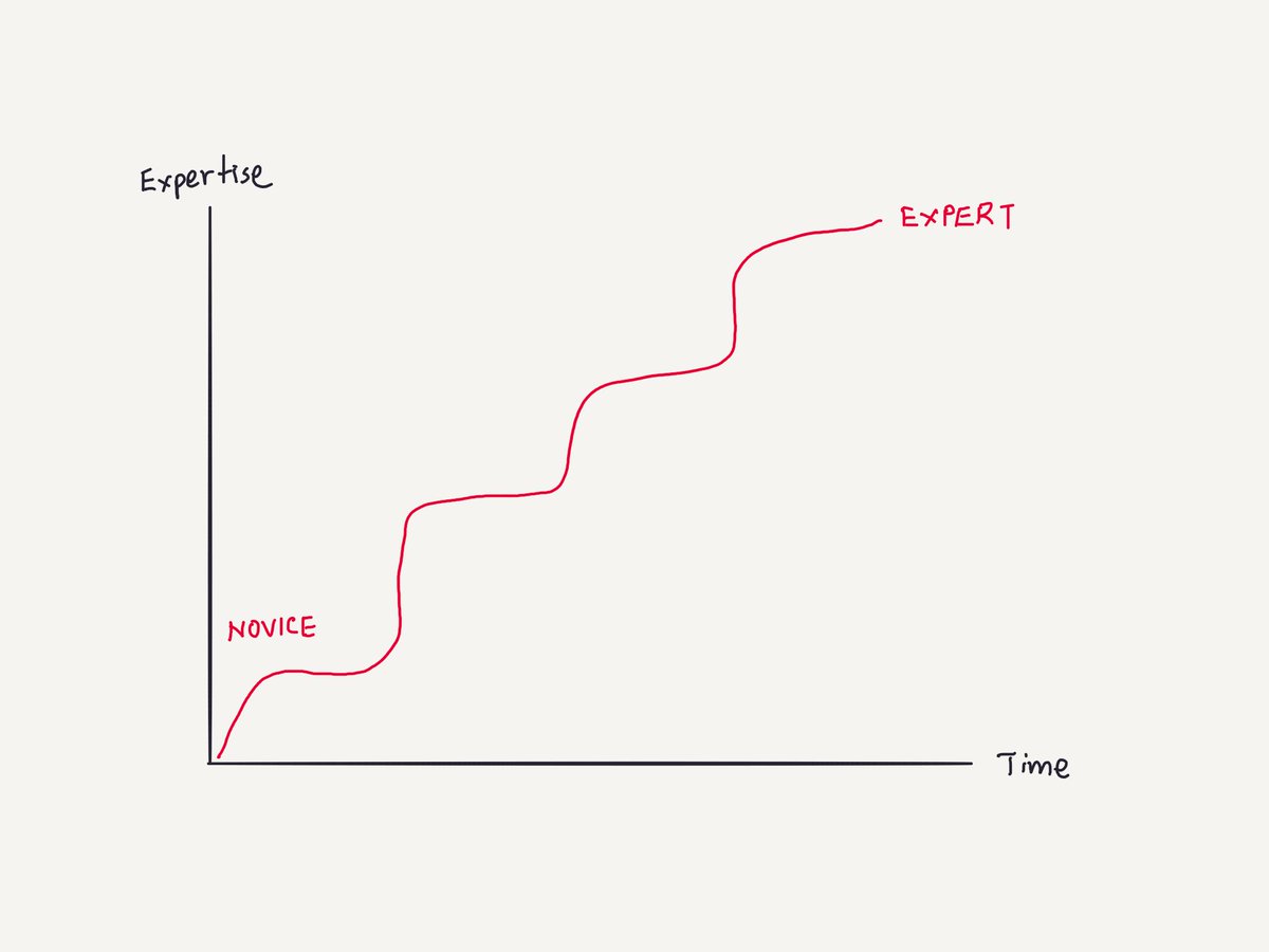 10/ This explains a bunch of things. It tells us why expertise building with trial and error is discontinuous. You hit plateaus, and then you make jumps.