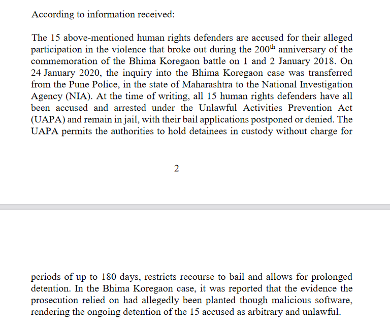 Human Rights Defenders detained in the #BhimaKoregaon case in particular have allegedly not benefited from fair trial guarantees.