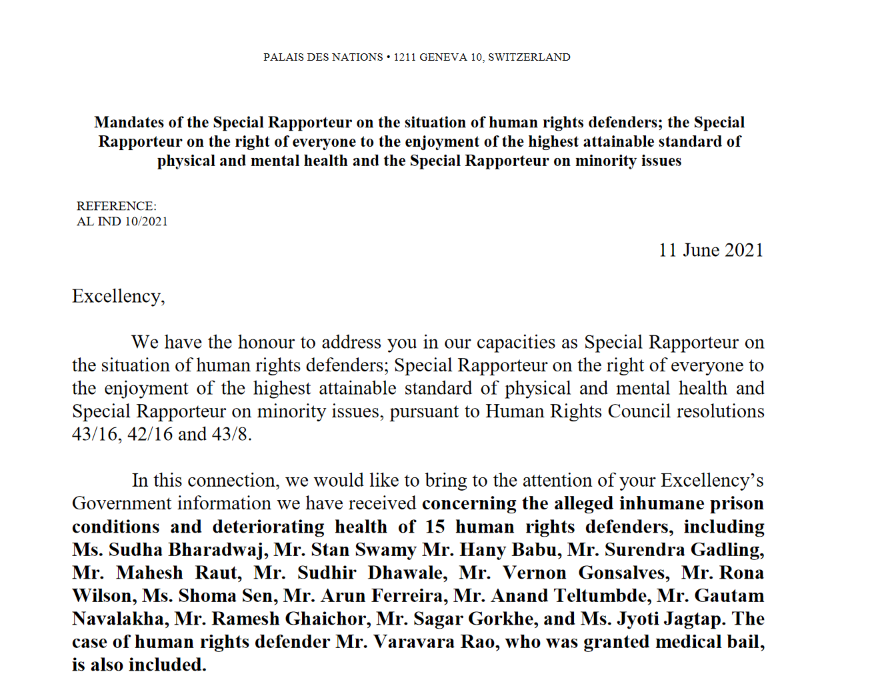 On 11 June, I sent a letter to the Government of 🇮🇳#India on the deteriorating health of 15 detained HRDs.