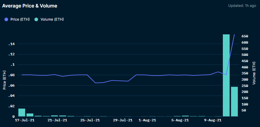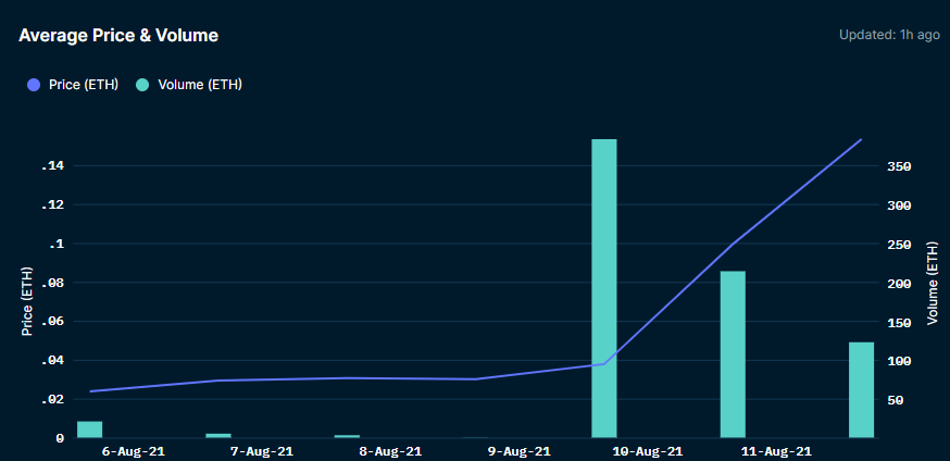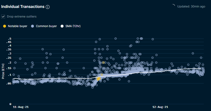 3. @alphabettyNFT continues to trend higher in both avg. price and volume. Significant amount of buys above SMA, implies that people are chasing beta via rares.