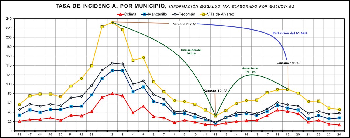 @salud_colima Actualmente estamos viviendo una aumento de los casos en el Estado, sin embargo, hay un municipio el cuál no tiene una tendencia ascendente, si no que al contrario, "estaría" disminuyendo.