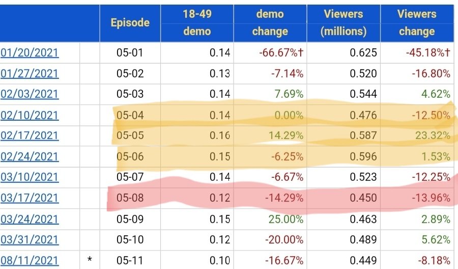 Here's the rub: Even if those on Twitter want to ignore the rating changes and push these false claims, TV Execs don't and they're the ones who make the calls and work with crews and showrunners.