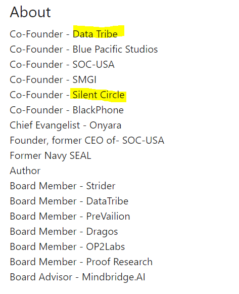He's a cybersecurity professional too. Information on his companies and what they do is sparse, but it's interesting he's into longevity, common theme among elite technocrats. Tied to shopify too, so billionaire connects.