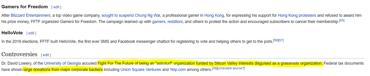 They've even been prominently accused of being an "astroturf" organization representing entrenched business interests, neat! And obviously they coordinated part of the Hong Kong protests lol.