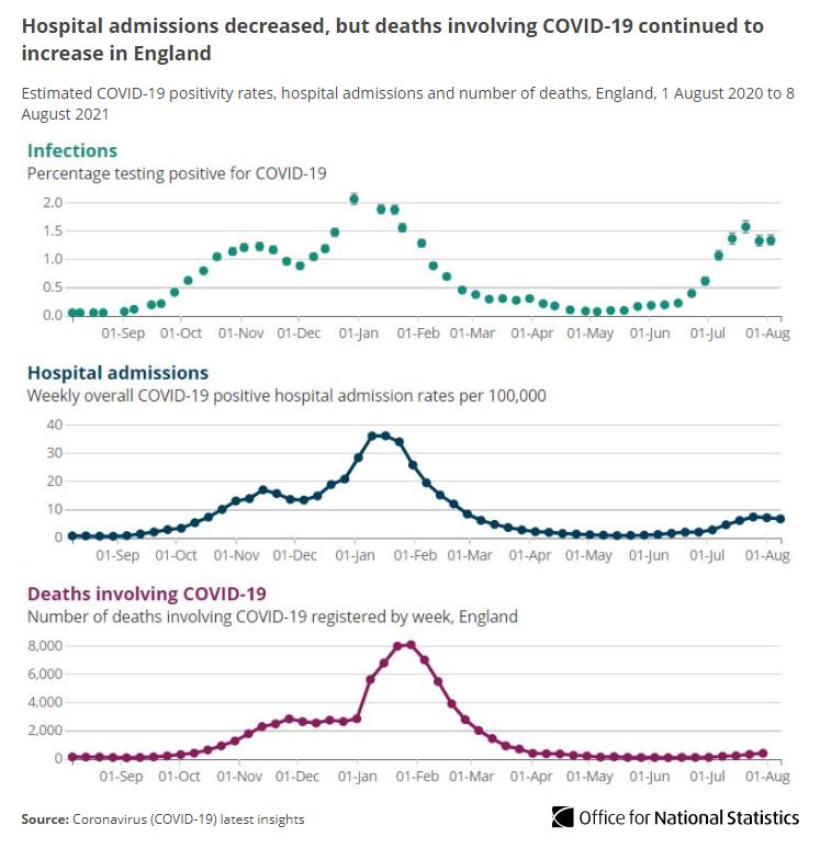 Hospital admissions decreased in the latest week, but deaths involving COVID-19 continue to increase ow.ly/nGOF50FQncZ Infections are higher than in the corresponding week of the