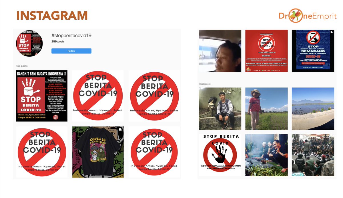 Dari statistik jumlah post untuk tagar terkait #stopberitacovid*, ditemukan sedikit postingan (259). Postingan yg tak menggunakan tagar ini tak dihitung.