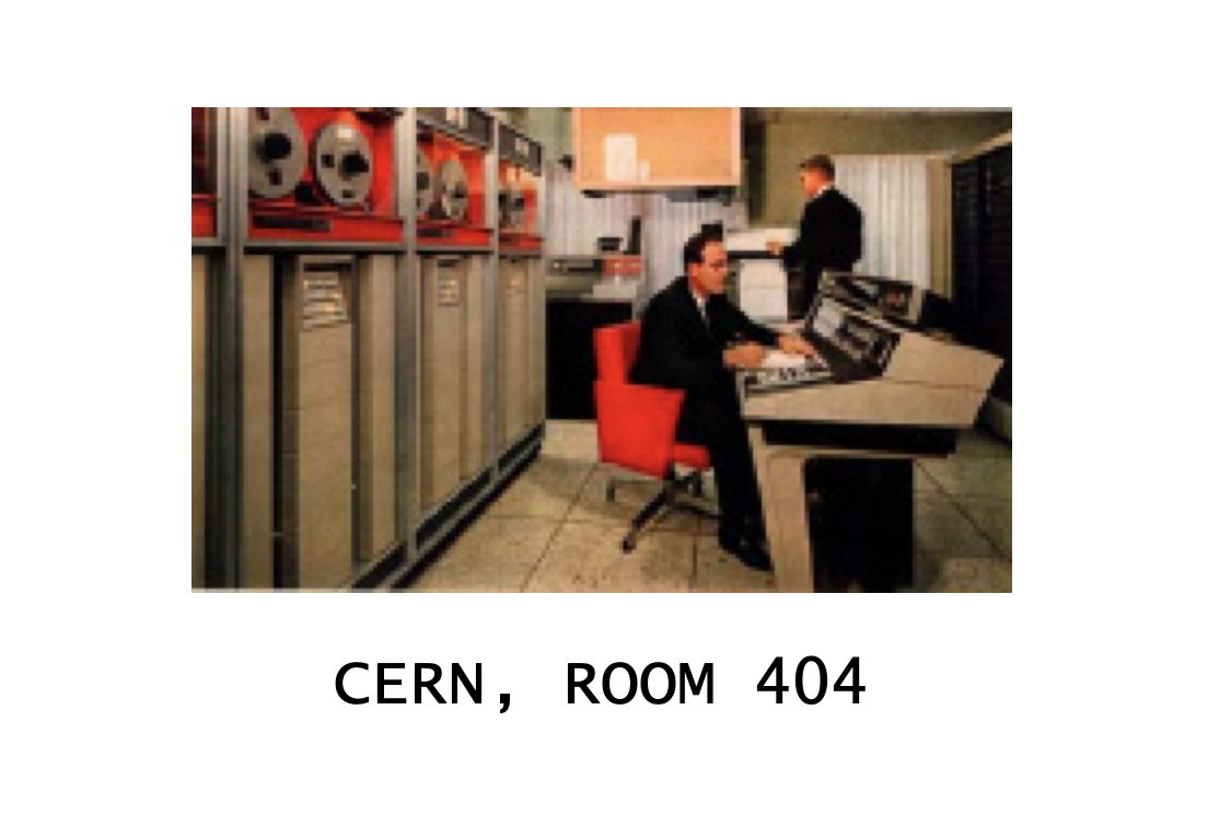 Di gedung CERN Swiss lantai 4, ruangan 404, database WWW pertama di dunia disimpan. Setiap ada permintaan file dari staff CERN, petugas database mencari secara manual, dan mengirim balik lewat WWW.
