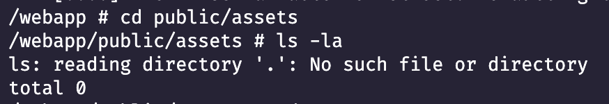 When I ssh into my container I can cd into `public/assets` but then I get this.