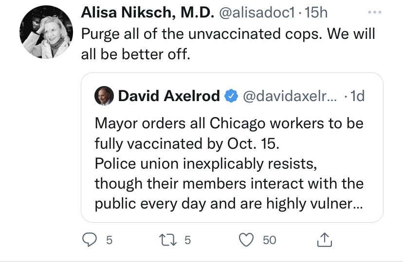 "Purge all of the unvaccinated cops. We will all be better off" 🤯 Image