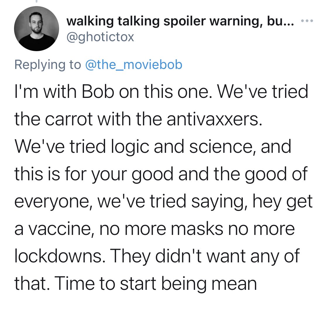 Calls unvaxxed "repulsive" and follows up with "we should unplug you from the ICU bed."🤔🤷‍♂️ Image
