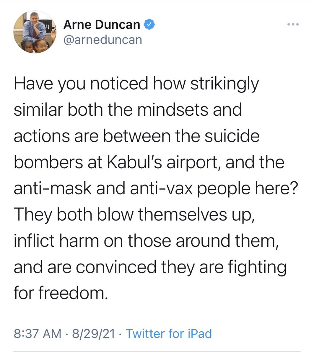 Comparing “anti-vax” to suicidal terrorists. These people are just truly disgusting. 🤦‍♂️ Image