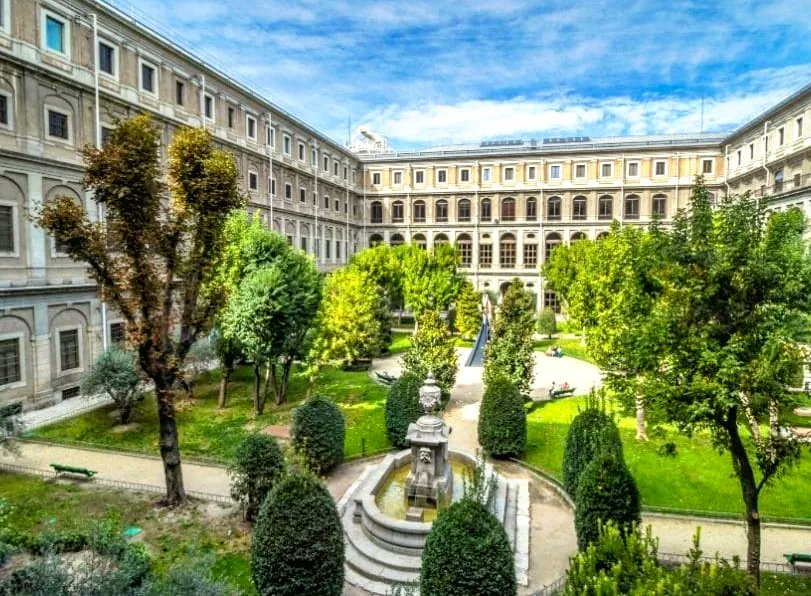 Antes de albergar una de las colecciones artísticas más importantes de este país, el edificio del Reina Sofía albergó el Hospital de San Carlos . En el centro se ubicó un agradable jardín, decorado hoy con esculturas. X