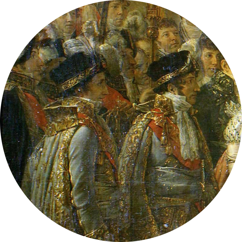 7. Napolyon’un ağabeyi Joseph (Solda, Napolyon’la kavgalı, gerçek seremonide yok) ve küçük kardeşi Louis (Sağda, Josephine’in kızı Hortense ile evli)...