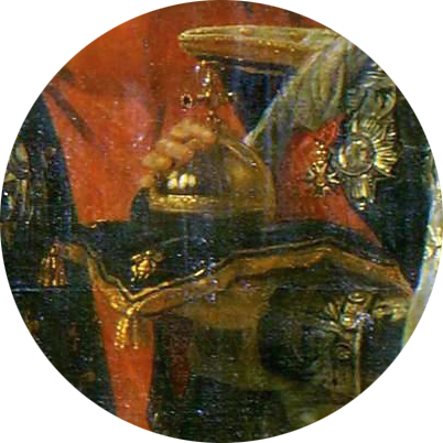 13. Egemenlik asası, “Adaletin eli” asası ve imparatorluk küresi de, ressam David’in tablosuna eklediği, Napolyon’un imparatorluk propagandasını pekiştiren önemli semboller...