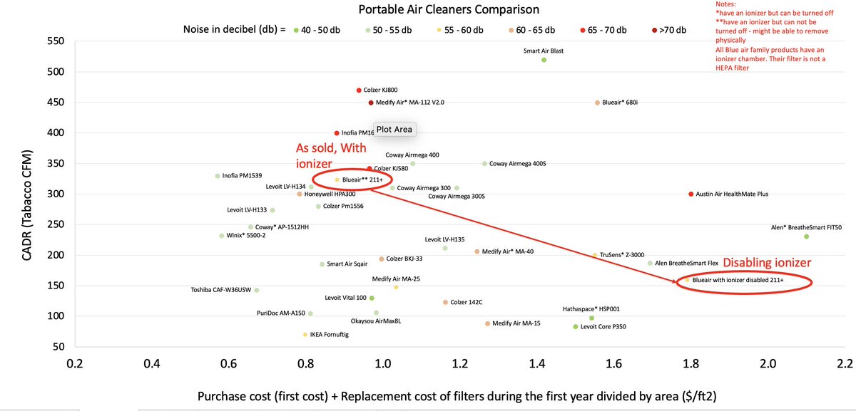 When you disable ionizer, the Blue Air purifier (fan and non-HEPA) decreases in performance. Take a look at the chart, much worse performance in terms of $/ft2 compared to other air cleaners. @smartrestartaps