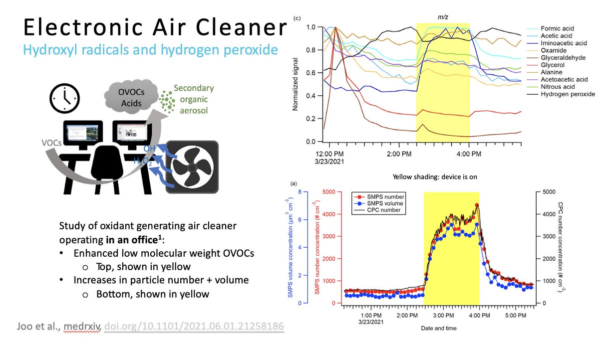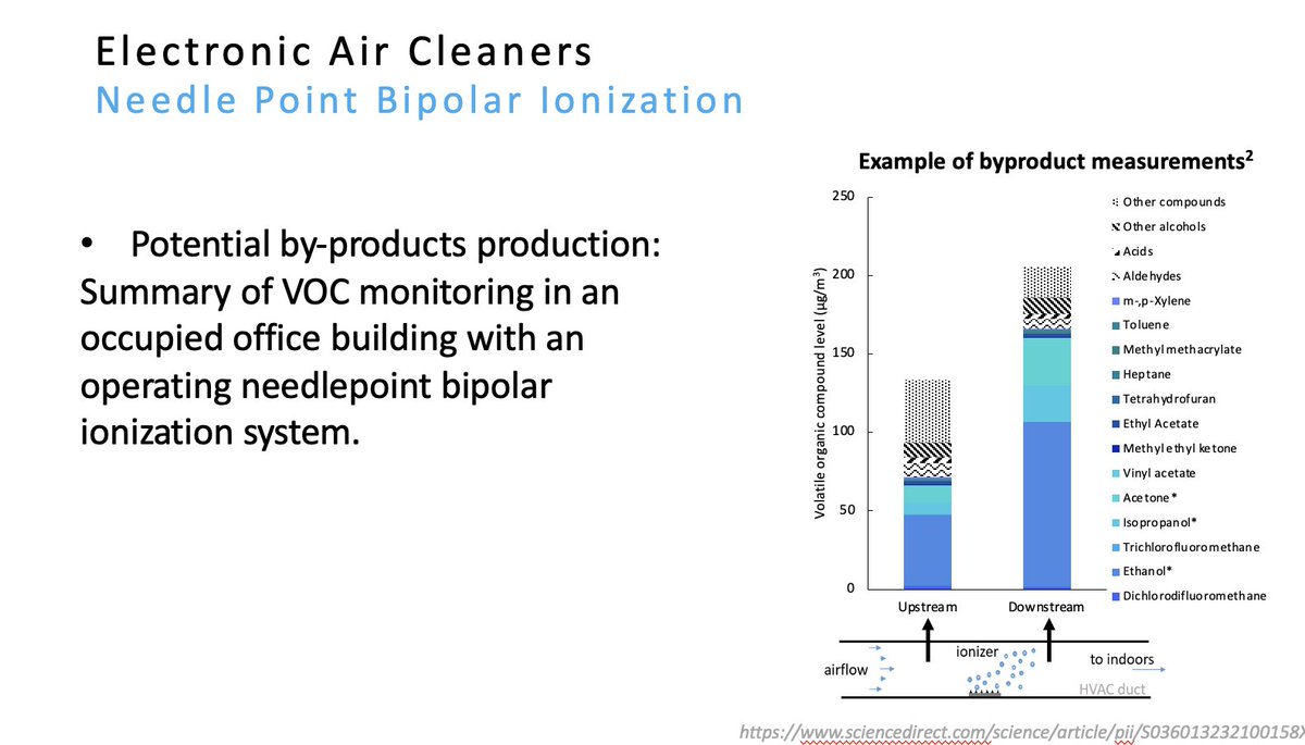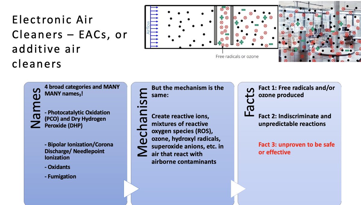 - Additive: like ionizers, will emit ozone/radicals/ROS/etc.. to react with the air (will emit something to remove something)