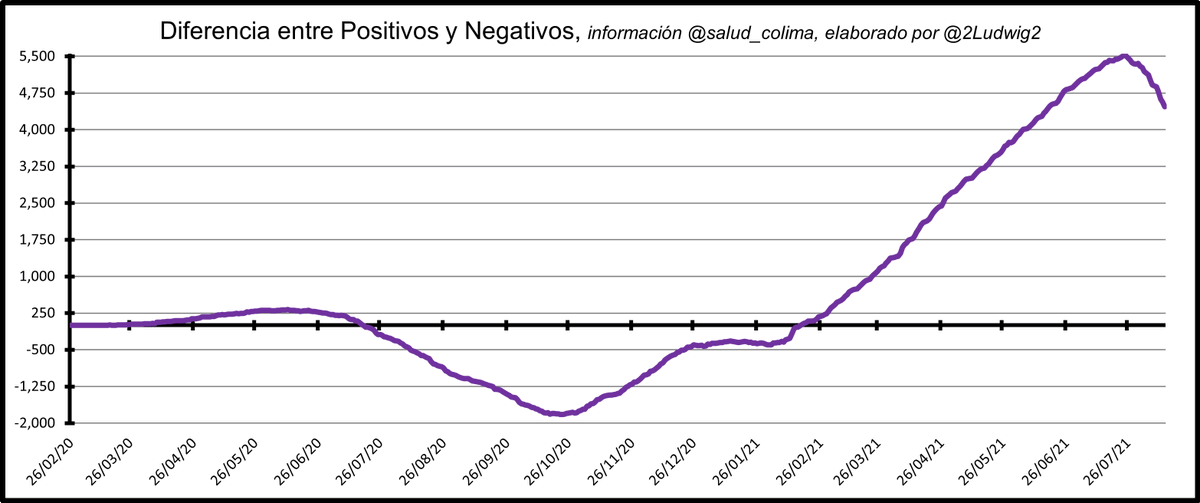 @salud_colima En las últimas 3 semanas, se han estado confirmando más casos positivos que negativos, está diferencia se aprecia mejor de esta forma.