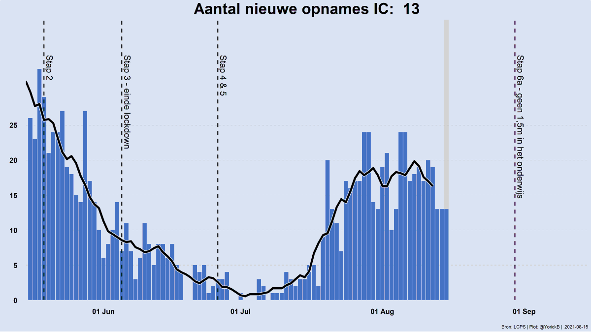 Pas als er elke dag 25 mensen per dag worden opgenomen op de IC (en er 400 mensen op de IC liggen), is de situatie volgens het kabinet 'ernstig'.