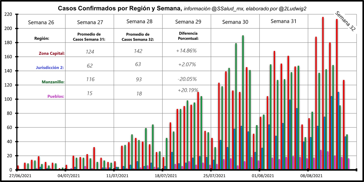 @salud_colima La semana 32, terminó con prácticamente la misma cantidad de casos confirmados que la semana 31.