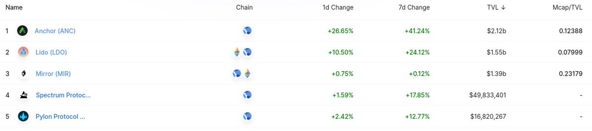 Letโs look now at Terra, where 3 protocols are responsible for 99% of the TVL.