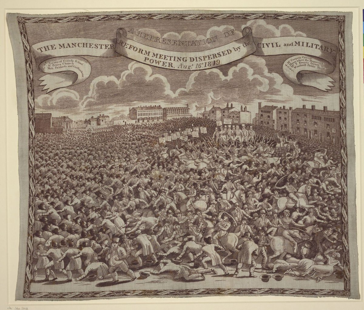 John Ashton from Cowhill near Oldham. Sabred and trampled on by crowd. He was carrying the flag of the Saddleworth, Lees and Mossley Union, inscribed "Taxation without representation is unjust and tyrannical. NO CORN LAWS." Inquest jury returned a verdict of accidental death.