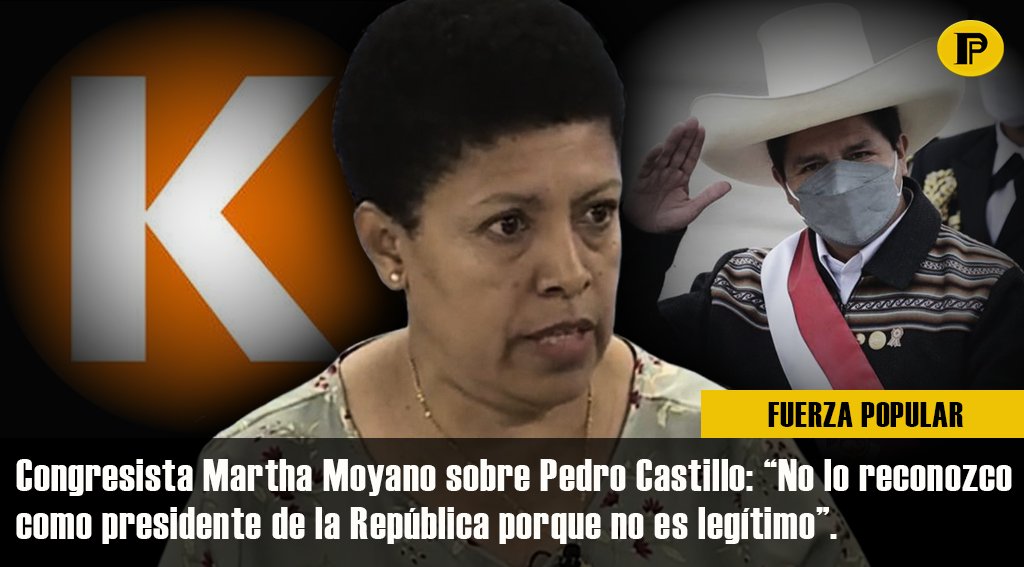 Al ser consultada en RPP acerca de si reconoce a Pedro Castillo como presidente de la República, la fujimorista respondió: "Yo con respeto me refiero al señor Castillo, pero no lo reconozco como presidente porque no es legítimo". (3/4)