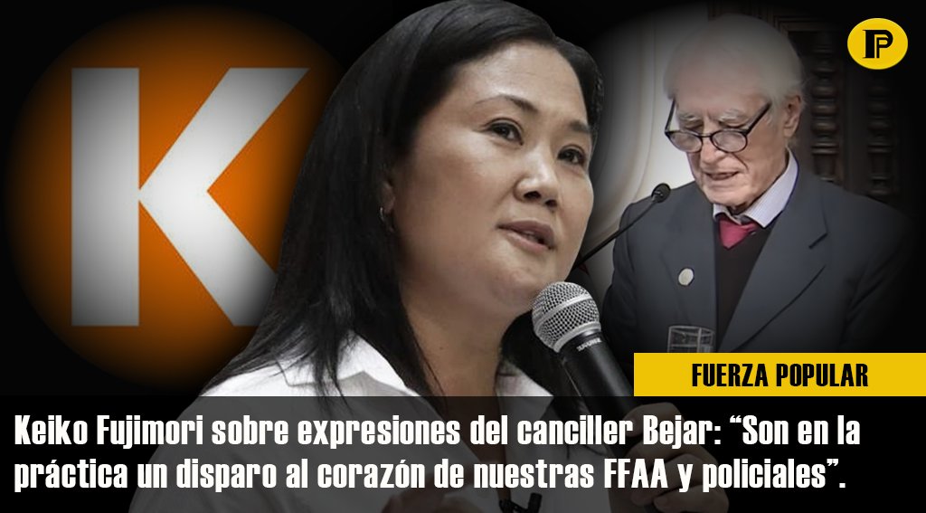 Luego de que una indignada Keiko Fujimori manifestó que las declaraciones del canciller Héctor Béjar sobre el terrorismo eran "un disparo al corazón de nuestras FFAA y Policiales", las redes sociales estallaron, recordándole las acusaciones contra el régimen fujimorista. (1/6)