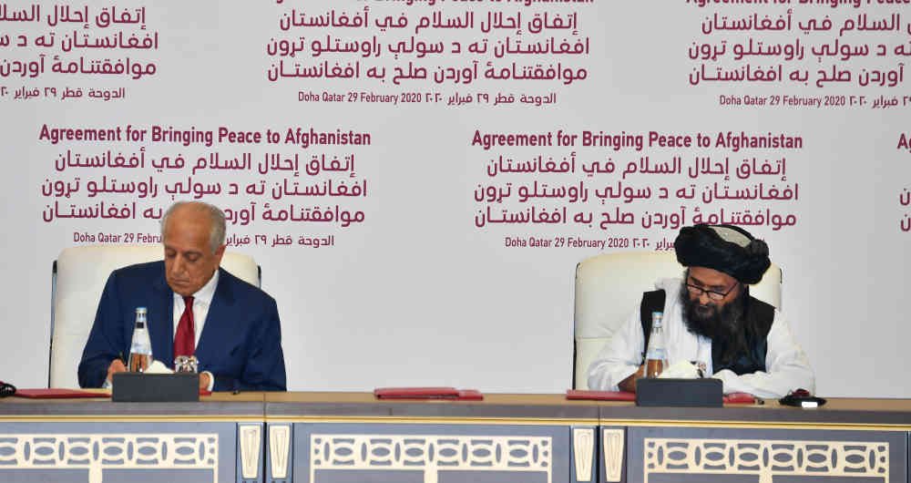 El acuerdo es llevado en Qatar, tras año y medio negociando. No es un acuerdo de paz sino para traer la paz. De los 14.000 soldados actuales, 8.600 deberían abandonar 🇦🇫 en un plazo máximo de 135 días a partir de la firma, liberar prisioneros afganos y milicianos talibanes.