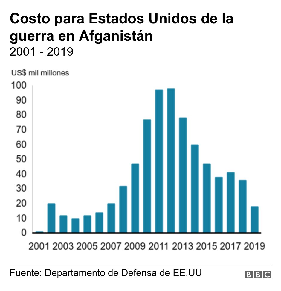 El gasto en 2019 a 2021 fue de 18 millones. Según el Departamento de Defensa, el gasto militar total desde que invadieron Afganistán en 2001 es de US$790.000 millones de dólares.