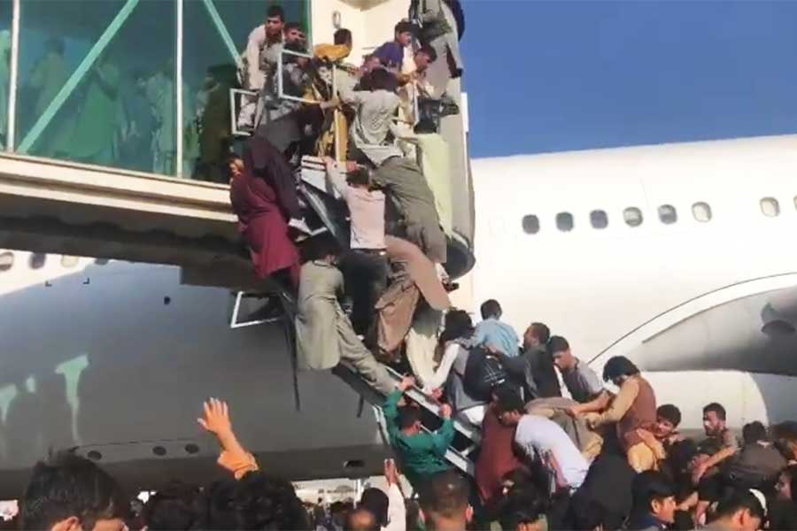 El caos inundó Kabul este domingo 15 de agosto de 2021, cuando el presidente afgano, Ashraf Ghani, huyó del país, mientras otros ciudadanos trataban de hacer lo mismo. Em embajador de EE.UU. fue evacuado de su complejo fuertemente armado en helicóptero ese mismo día.