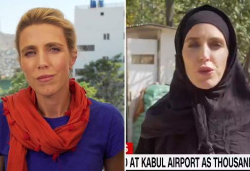 Un ejemplo es Clarissa Ward, corresponsal de CNN en Afganistán, cambió su vestimenta en menos de 24 horas tras la toma de los talibanes en Kabul. En la segunda foto se puede ver casi sin maquillaje y tapada.