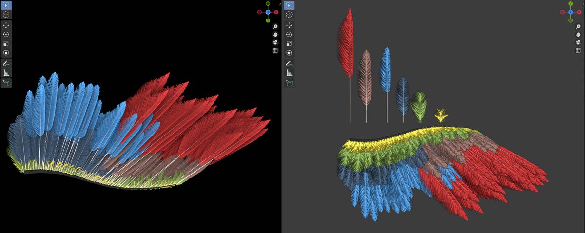 Procedural wing part 2. Started from scratch. Still not satisfied. Gotta do it third time to get it right. But easy to control with 2 sliders ! Automatic gliding when flapping is turned off. #geometrynodes#b3d