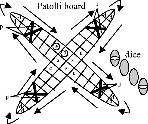 Os movimentos dependiam do resultado do lançamento de dados, geralmente usados com feijões secos marcados com um buraco ou pontos brancos.