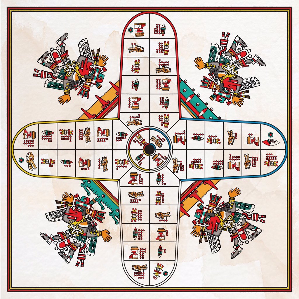 O jogo tinha conotações astrológicas, notável nos tabuleiros com as 4 direções com 13 espaços cada, totalizando 52, o número sagrado de anos para completar uma era completa na roda de calendário Asteca, ou seja a combinação dos calendários de 260 (ritual) e 365 (anual) dias.