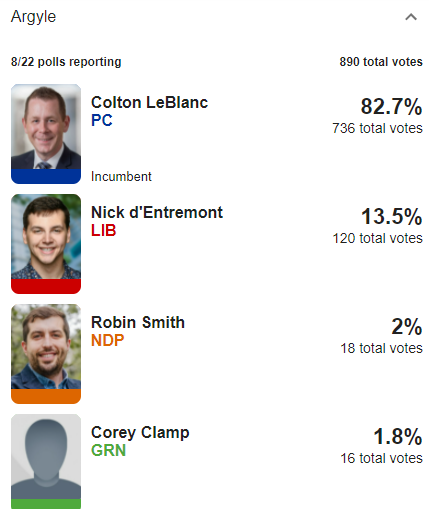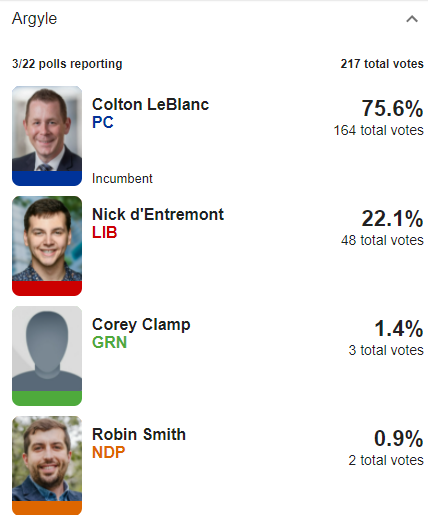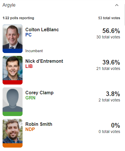 Clare is hands down the closest race we're watching: Liberal Ronnie LeBlanc with a 4-vote lead over PC Carl Deveau