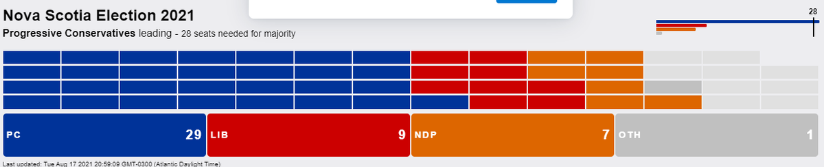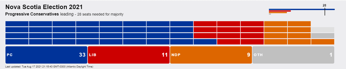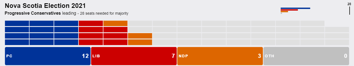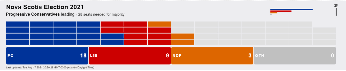 18-9-3 for the PCs, but still waiting for several results to come in from Halifax, where the Liberals are expected to make up ground