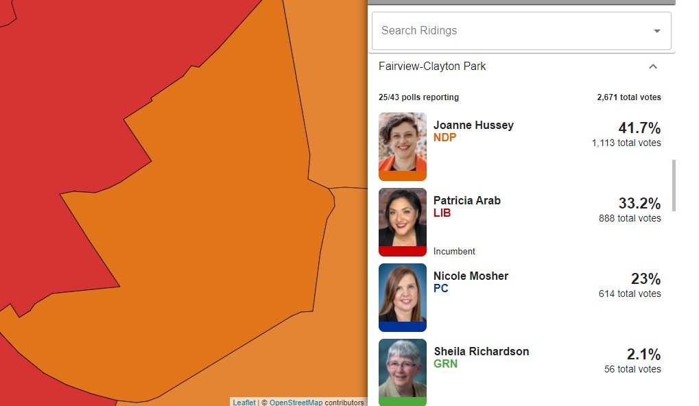 Expecting it to be a tight race here: NDP's Joanne Hussey with a lead over incumbent Liberal Patricia Arab. @JoanneHusseyNDP