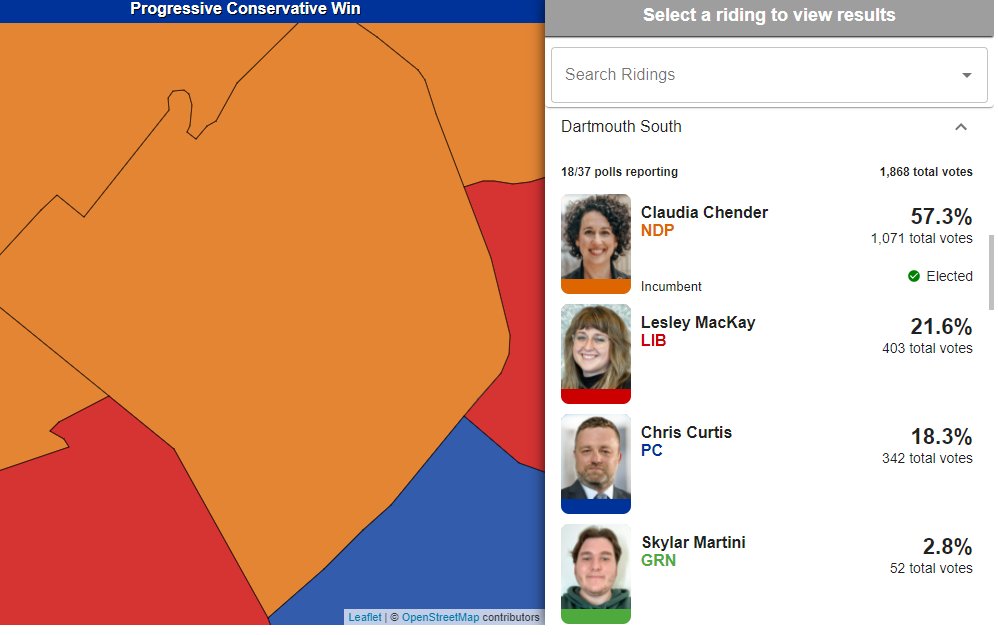 Global News is projecting @ChenderClaudia will defeat Liberal Lesley MacKay in Dartmouth South