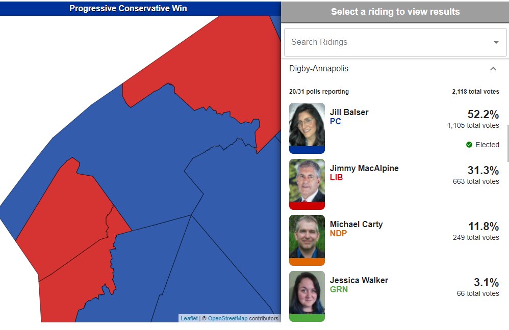 Global News is projecting @jillbalser will win in the riding of Digby-Annapolis. This is the first time the riding has elected a female candidate.