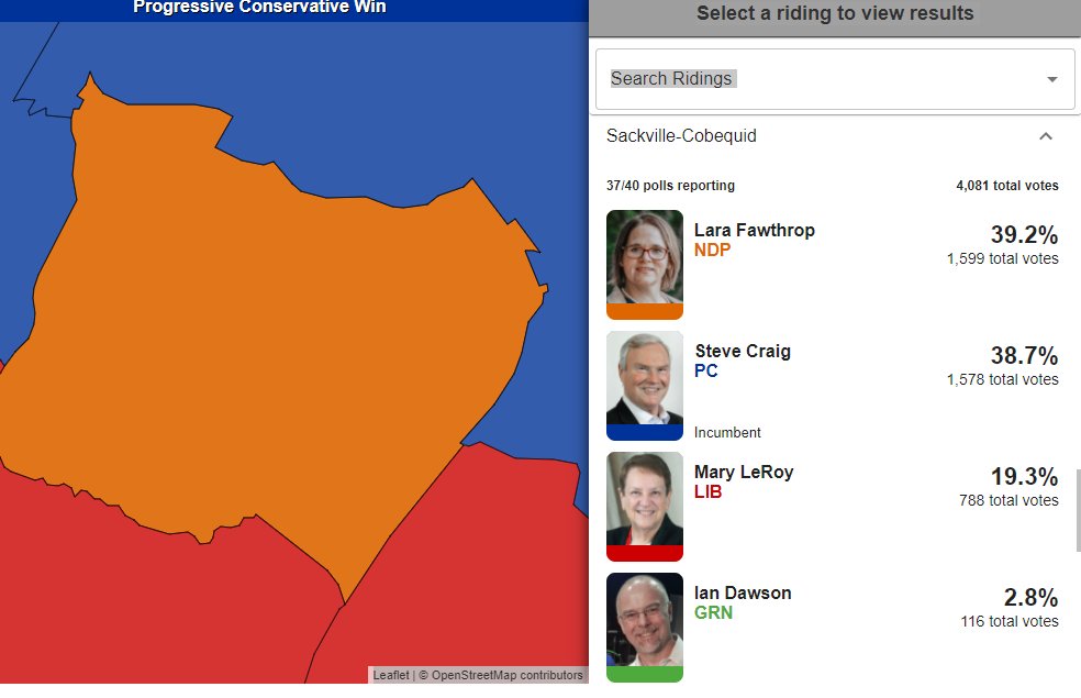 Another tight race happening in Sackville-Cobequid, where PC @SteveCraigNS is trying to hang on to his seat.