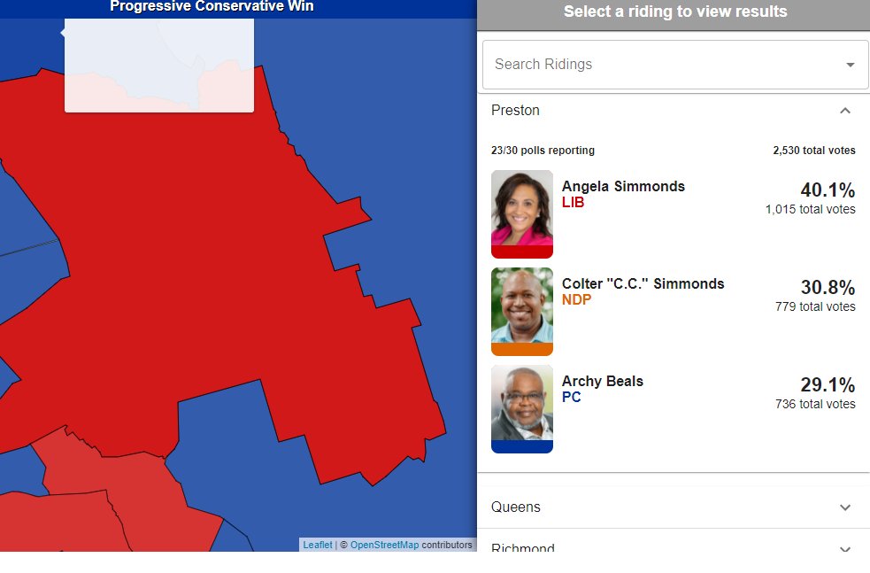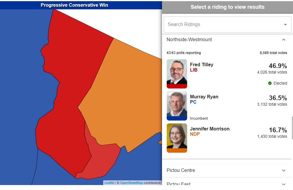 Liberal Fred Tilley just took Northside-Westmount over PC Incumbent Murray Ryan