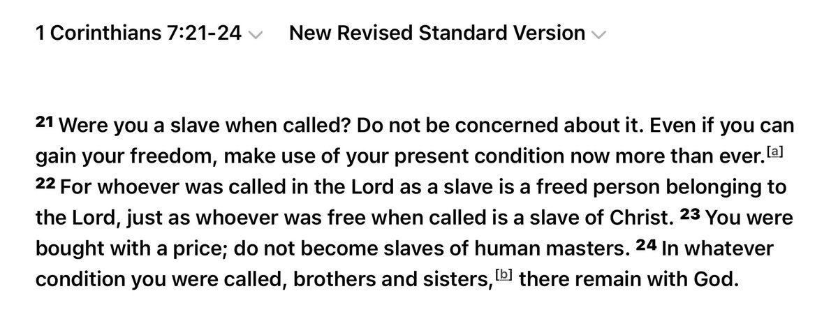 We also see the New Testament authors making mention of slavery and slaves. Let’s start with Paul… In one of his earliest letters, Galatians, Paul makes what is perhaps the first truly egalitarian statement in human history. ⬇️