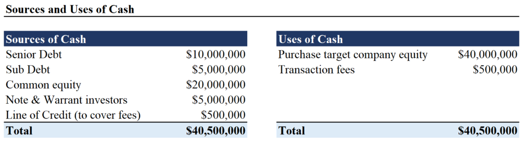 Sources & Uses is a tool used heavily in M&A ++ financing deals in investment banking.